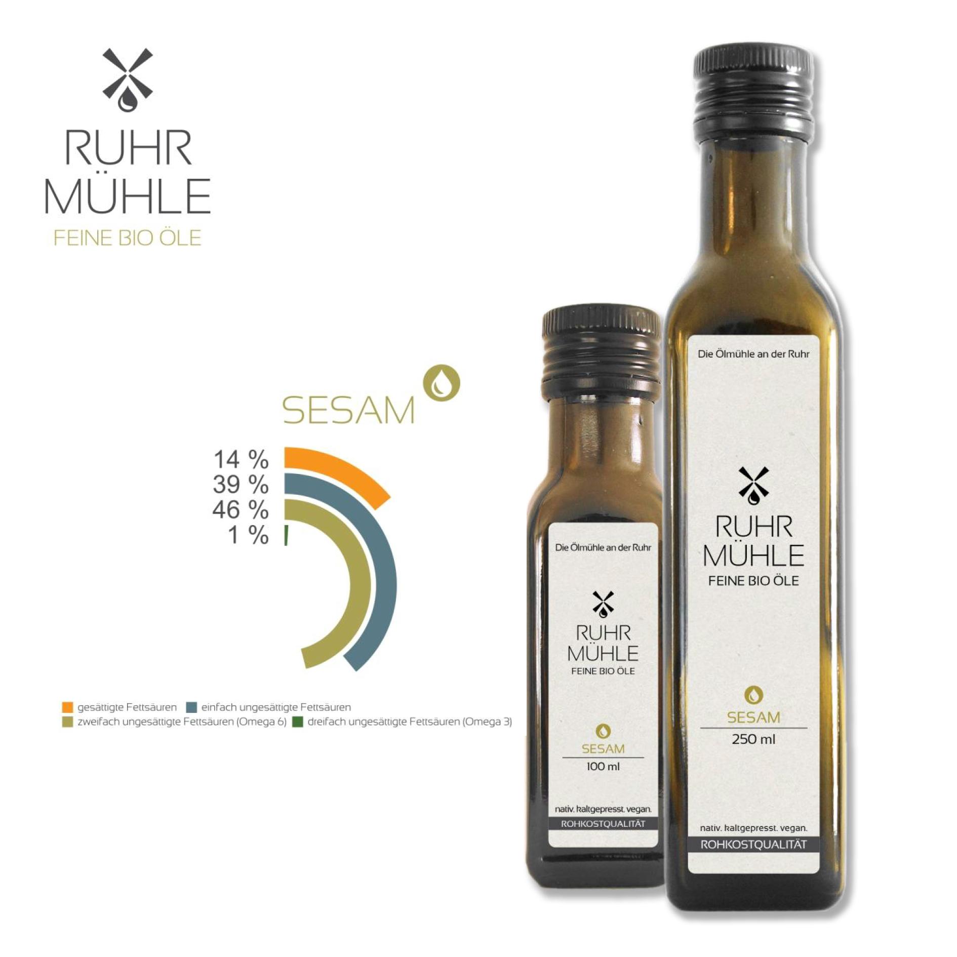 Natives BIO-Sesamöl wird aus ungerösteter Sesamsaat durch kalte Pressung gewonnen und ist im Vergleich zu Öl aus gerösteter Saat besonders mild im Geschmack und besonders gut bekömmlich. Das hellgelbe Sesamöl ist ein reines, naturbelassenes Produkt, welches überdurchschnittlich lang haltbar ist. Kenner der asiatischen Küche lieben und schätzen den arteigenen milden Duft und Geschmack nativen Sesamöls. Sesamöl besteht zu etwa 40 Prozent aus ungesättigter Linolsäure. Diese hat viele gesundheitsfördernde Effekte, so verringert sie den Blutfettspiegel, stärkt das Herz und die Blutgerinnung und beugt Osteoporose und Arterienverkalkung vor.