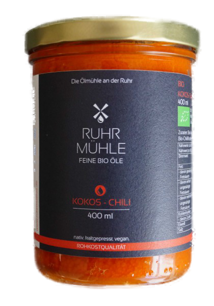 Unser natives Kokos-Chili-Öl in Bio-Qualität wird aus reinem, weißem Kokosnussfleisch und crushed Chili bei max. 40°C schonend kaltgepresst. Der exotisch köstliche scharfe Geschmack und Geruch nach frischen Kokosnüssen und crushed Chili bleibt durch unser schonendes Kaltpressverfahren erhalten. Das so gewonnene Kokos-Chili-Öl wird nicht gehärtet, gebleicht, gefiltert oder desodoriert. Es ist 100% naturbelassen. Unser Bio-Kokosöl ist auch für die vegane Küche bestens geeignet.